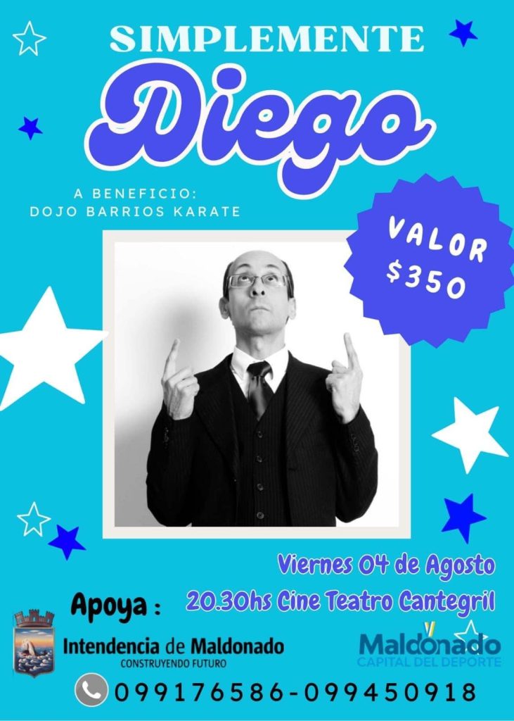 El humorista uruguayo presenta su espectáculo «Simplemente Diego», a beneficio de Dojo Barrios Karate