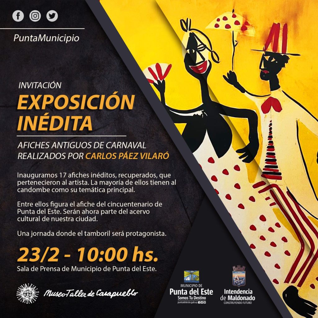 Presentación de afiches antiguos de carnaval realizados por Carlos Páez Vilaró
